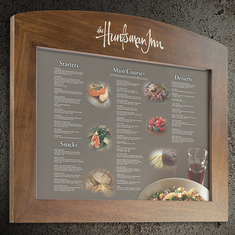 All our menu displays are available as a wall mounted option, with or without illumination.
