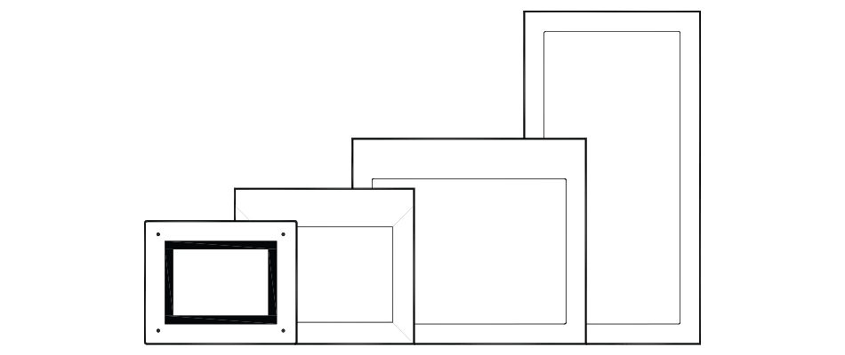 All our display cases are available in different sizes, as a wall mounted option or free standing one. You can choose between angled or vertical stand and battery or classical power option.